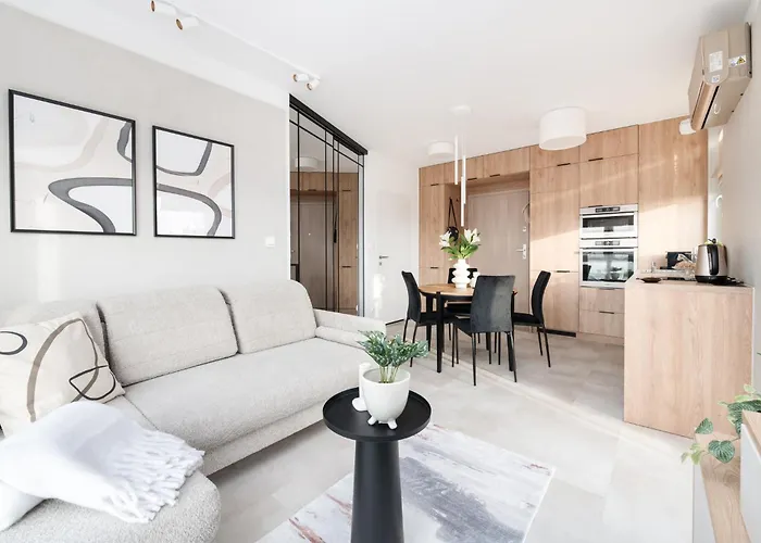 Dotato di servizi per la preparazione di tè/caffè e di un angolo cottura, l'appartamento offre un microonde, un bollitore elettrico e un frigo. La stazione degli autobus Sobieszewska è a soli 450 metri.